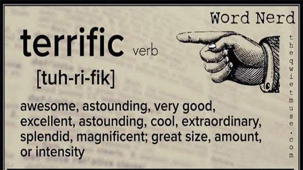 Goooood day students ! How are you on this lovely Wednesday? I hope terrific! TERRIFC TEACHER ? The word terrific has a very positive meaning in English